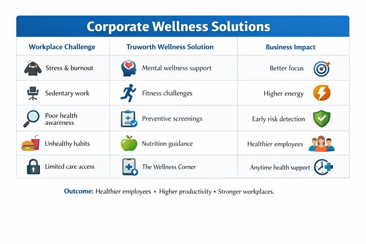 Through its integrated wellness solutions and digital platforms, Truworth Wellness helps organizations build workplaces where employees feel supported, engaged, and ready to perform at their best.