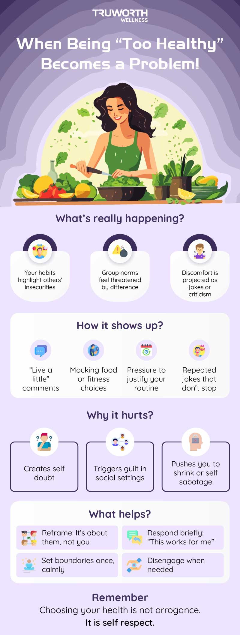 Being told you are “too healthy” over and over again sends an underlying message that your self-care is inconvenient, excessive, or socially unacceptable.
