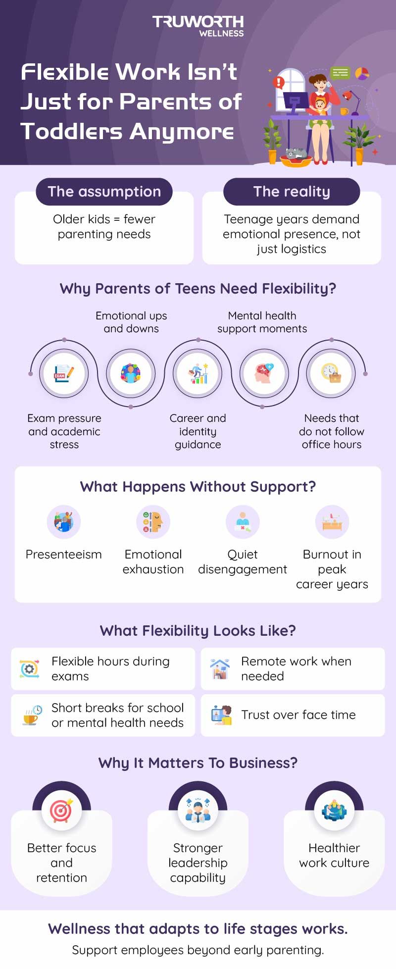 At Truworth Wellness, we work with organisations to design wellbeing strategies that reflect real life, not ideal scenarios. This includes recognising that parenting challenges do not end after early childhood.