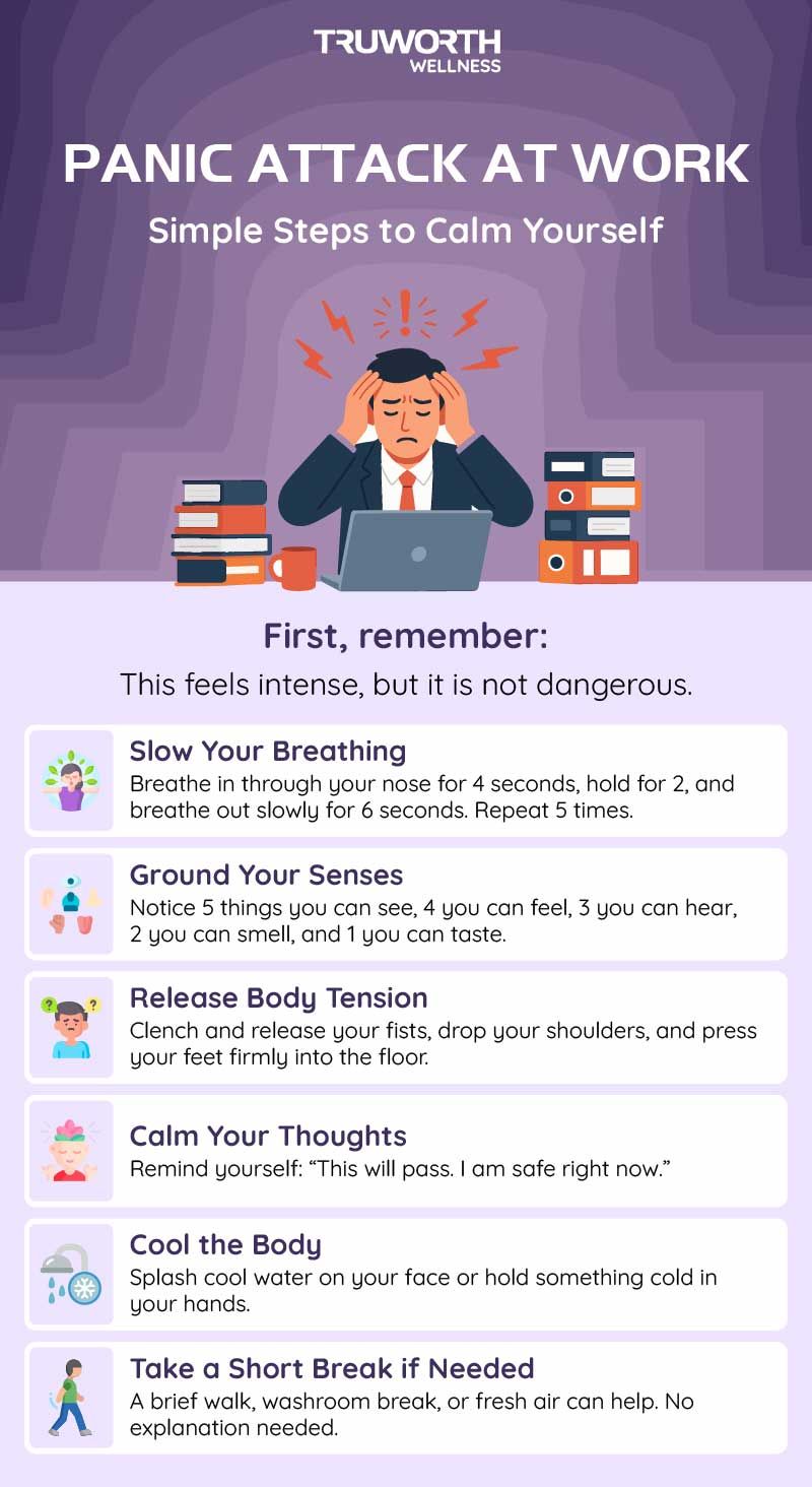 Breathing is one of the fastest ways to calm panic, especially in a workplace setting where discretion matters.