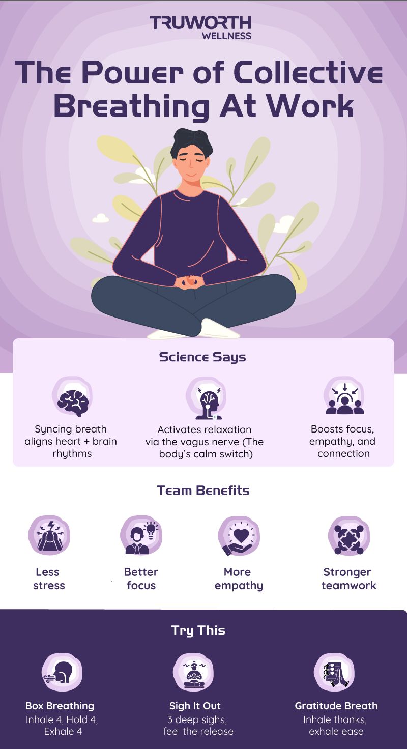 Organizations that have introduced collective breathing practices often report less burnout, more patience, and stronger bonds among colleagues. Employees describe it as a shared pause, a simple reset that lets them come back to tasks clearer and calmer.
