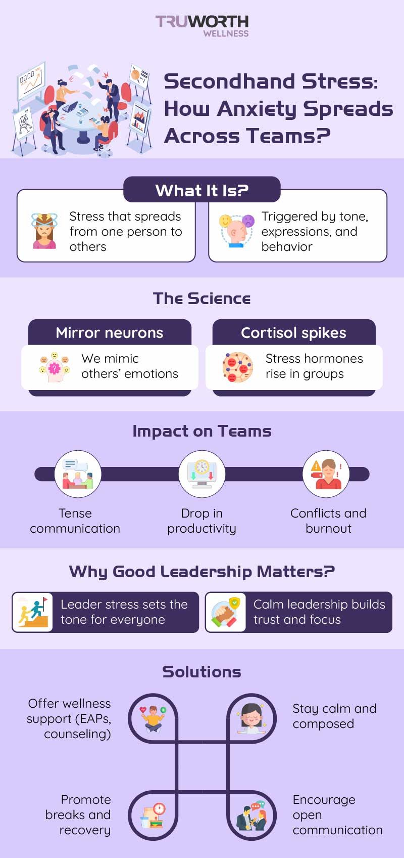 Secondhand stress occurs when one person’s anxiety, frustration, or tension is picked up by others around them. It doesn’t require words. Facial expressions, tone of voice, and body language are often enough to transmit unease.
