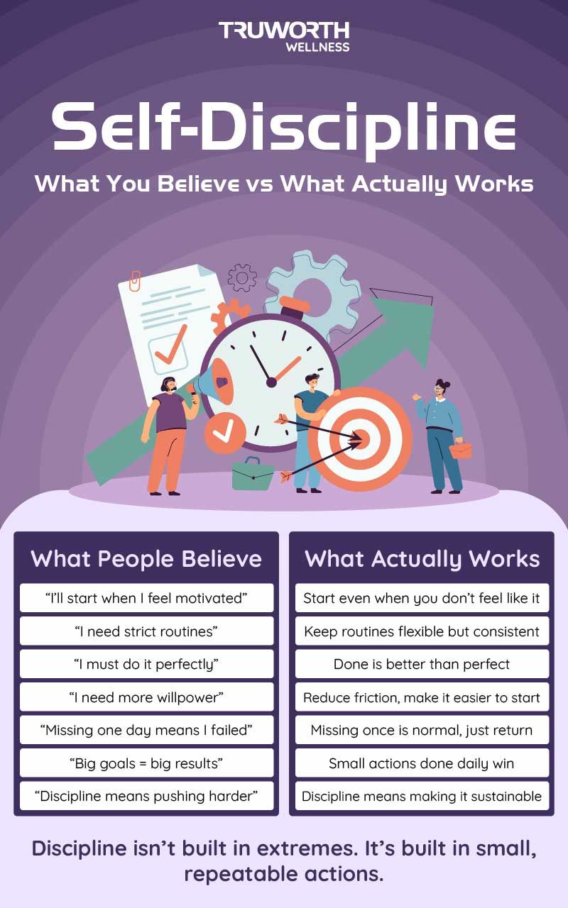 Self-discipline is not about feeling like doing something. It is about doing it even when you don’t feel like it, but in a way that is realistic and repeatable.