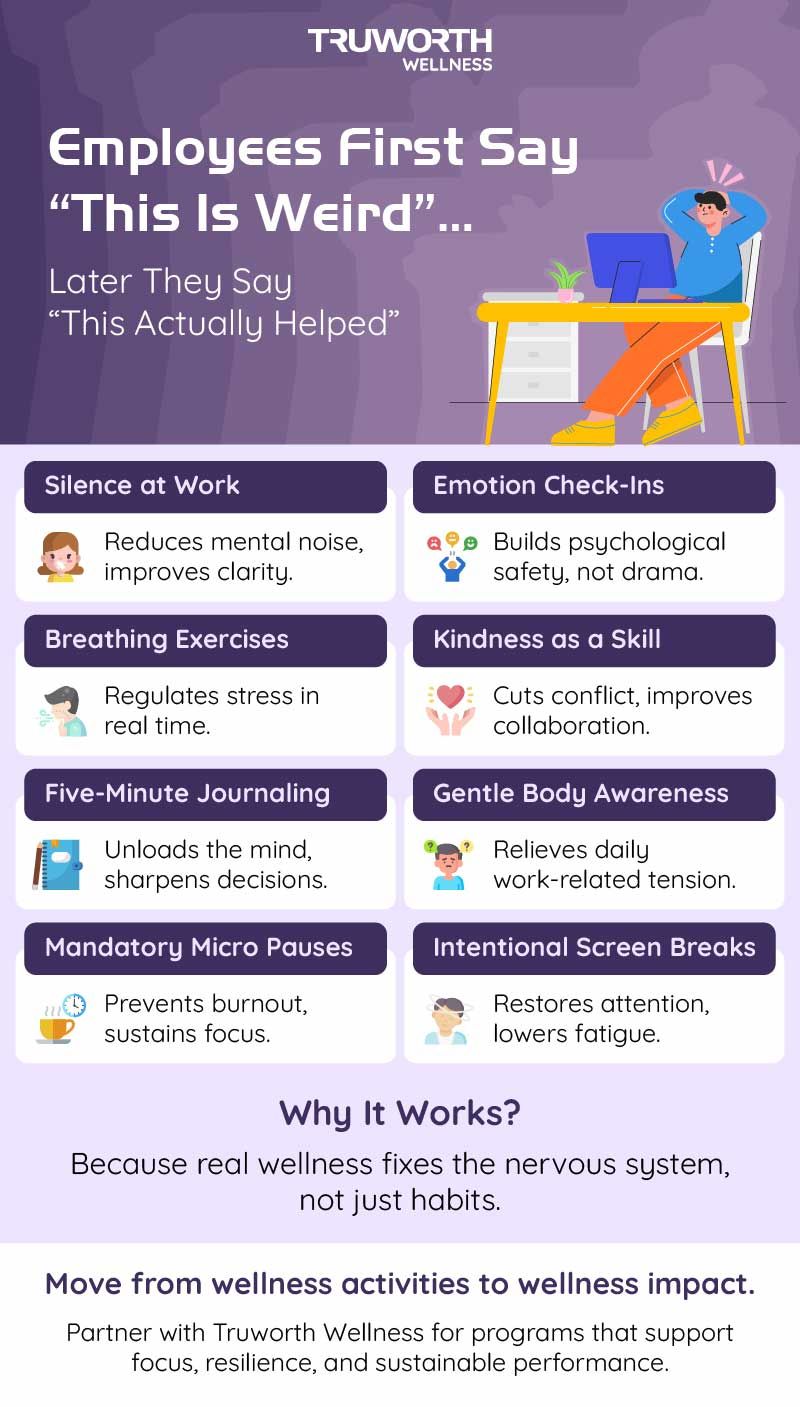 Here are some of the most unexpected wellness initiatives employees initially questioned, but later realized were genuinely powerful.