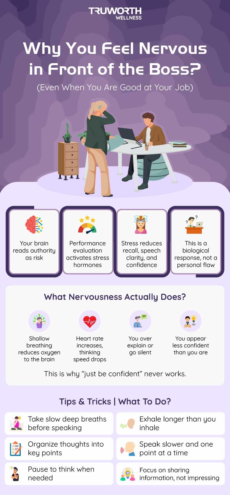 You understand your role. You know the subject. You have prepared your points. Yet the moment your boss asks a question or calls you into a discussion, your body reacts instantly.